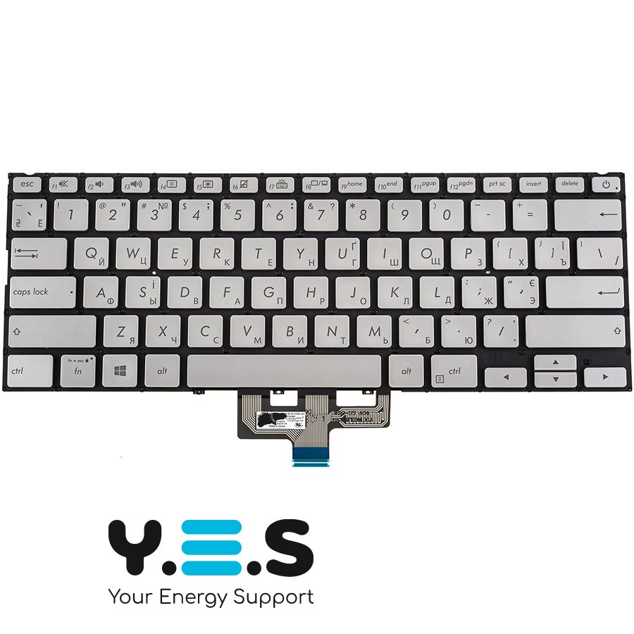Клавіатура для ноутбука ASUS UX433 series — українська розкладка, срібляста, без рамки, з підсвіткою клавіш, Original