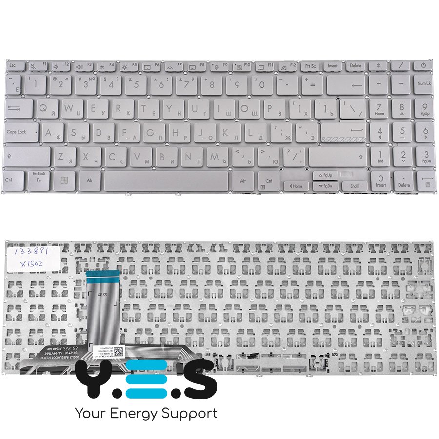 Клавіатура для ноутбука ASUS X1502 series — розкладка RUS, срібляста, без рамки