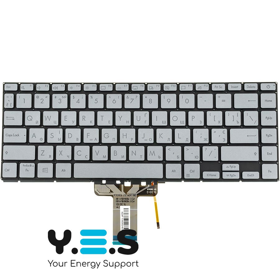 Клавіатура для ноутбука ASUS X421 series — українська розкладка, сірий колір, без рамки, підсвічування клавіш (Original)