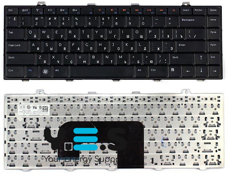 Чорна клавіатура-аналог для Dell Studio 14 / 14z (моделі 1440–1458). Підтримує двомовну розкладку (російську RU та англійську EN, QWERTY). Часті коди: DE88‑RUS або 0D443P для RU-версій, також зустрічаються модулі US/RU layout під кодом 0F6PR та V100846AS1. Ідеально підходить для заміни клавіатури у вказаних моделях.
