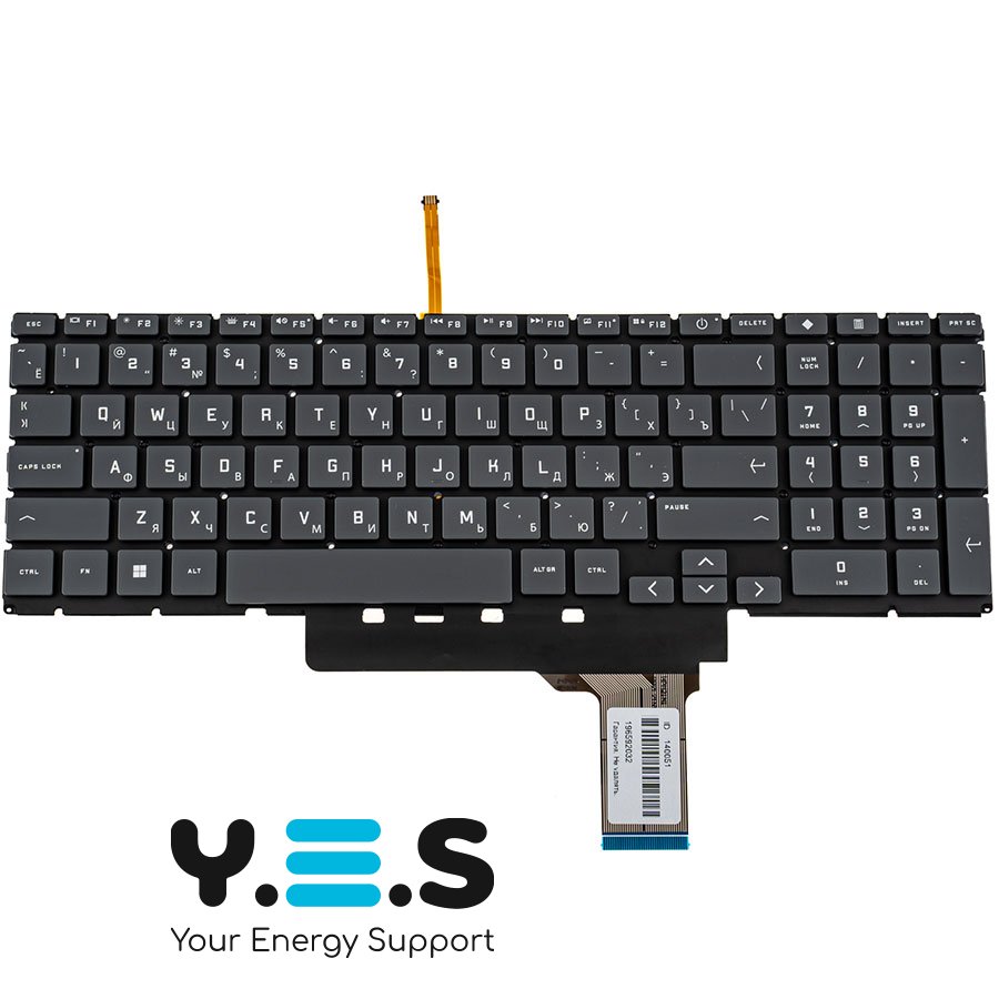 Клавіатура для ноутбука **HP Victus 16-K** — **RU-розкладка**, **темно-сіра**, **без рамки**, **з підсвіткою клавіш**