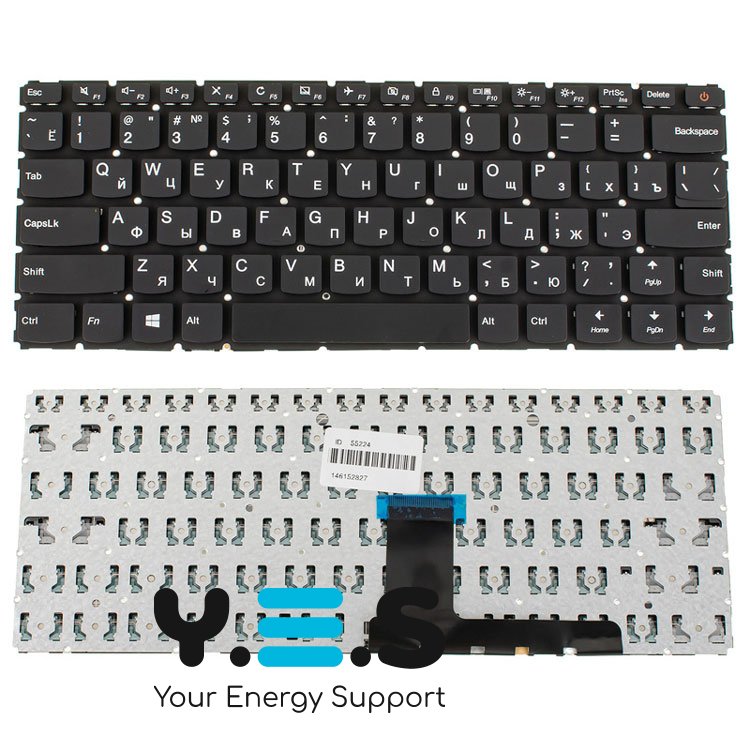 Клавіатура для ноутбука Lenovo IdeaPad 110-14IBR — чорна, RU-розкладка, без рамки