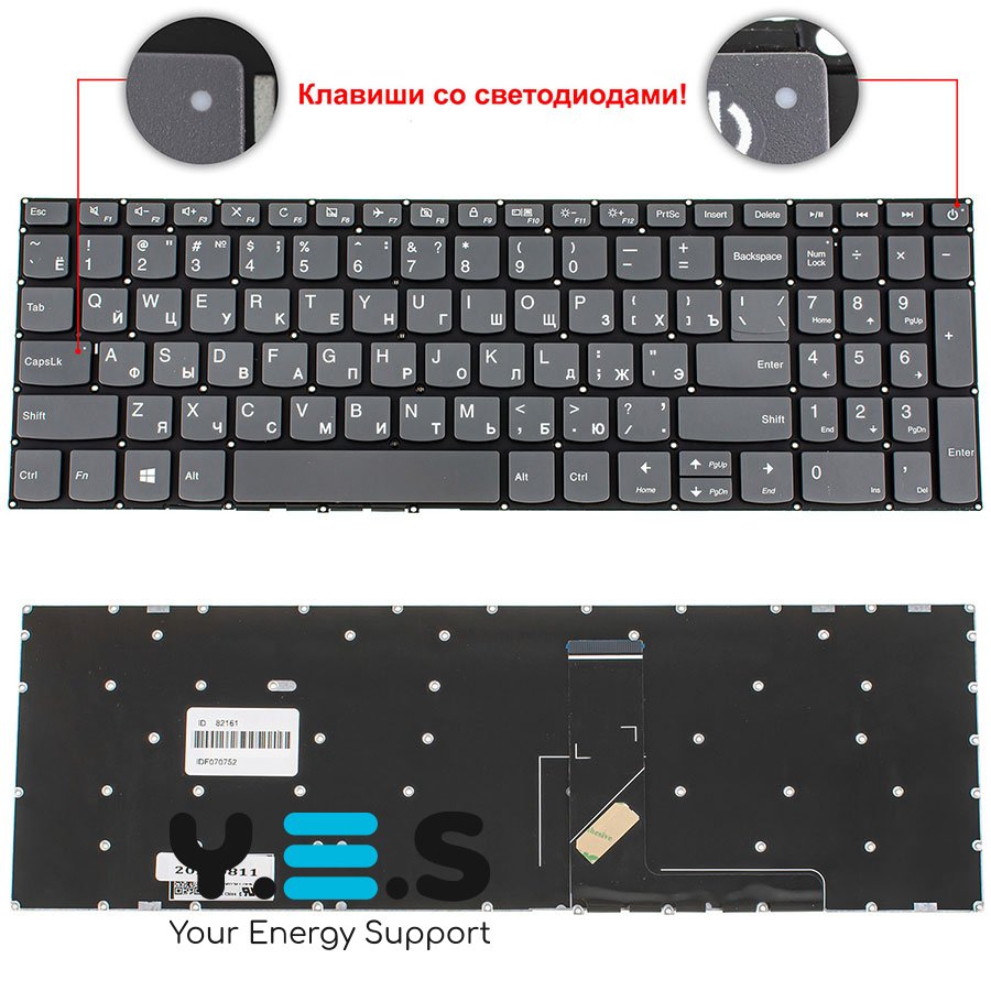 Клавіатура для ноутбука Lenovo IdeaPad 320-15 series, RU-розкладка, onyx black, без рамки, зі світлодіодом на кнопці живлення (Original)