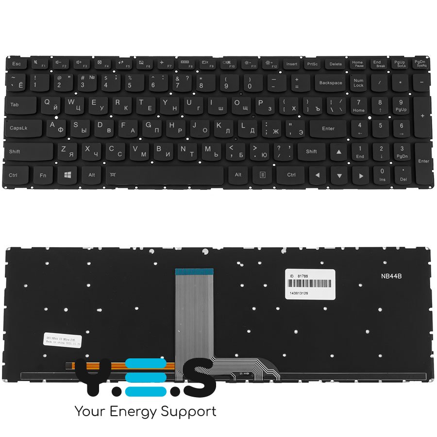 Клавіатура для ноутбука Lenovo IdeaPad 700-15ISK / 700-17ISK — чорна, RU-розкладка, без рамки, з підсвіткою клавіш