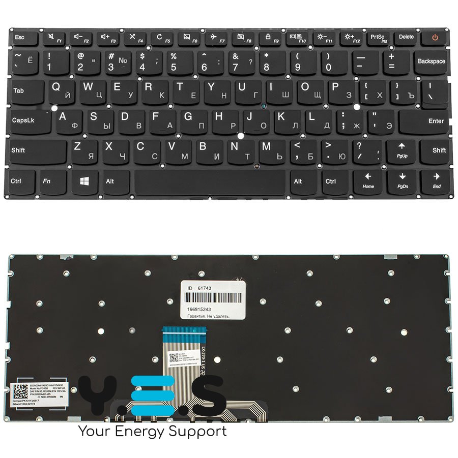 Клавіатура для ноутбука Lenovo IdeaPad 710S-13 — чорна, RU-розкладка, без рамки