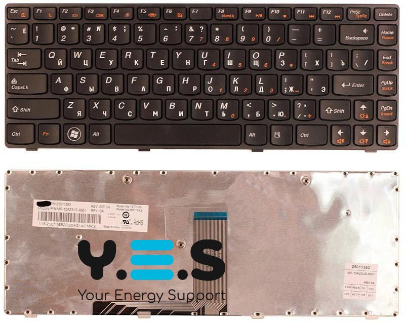 Чорна клавіатура‑аналог **** для моделей Lenovo IdeaPad B470, V470, G470, G475, B475, V480. Підтримує двомовну QWERTY‑розкладку RU + EN, без підсвітки. Часто представлена як generic RU layout (MPN “Does Not Apply”), хоча доступні версії з OEM-кодами **25209343** чи **25209373**, відповідні RU layout у рамках форм‑фактору. Ідеальна заміна штатного модуля клавіатури.