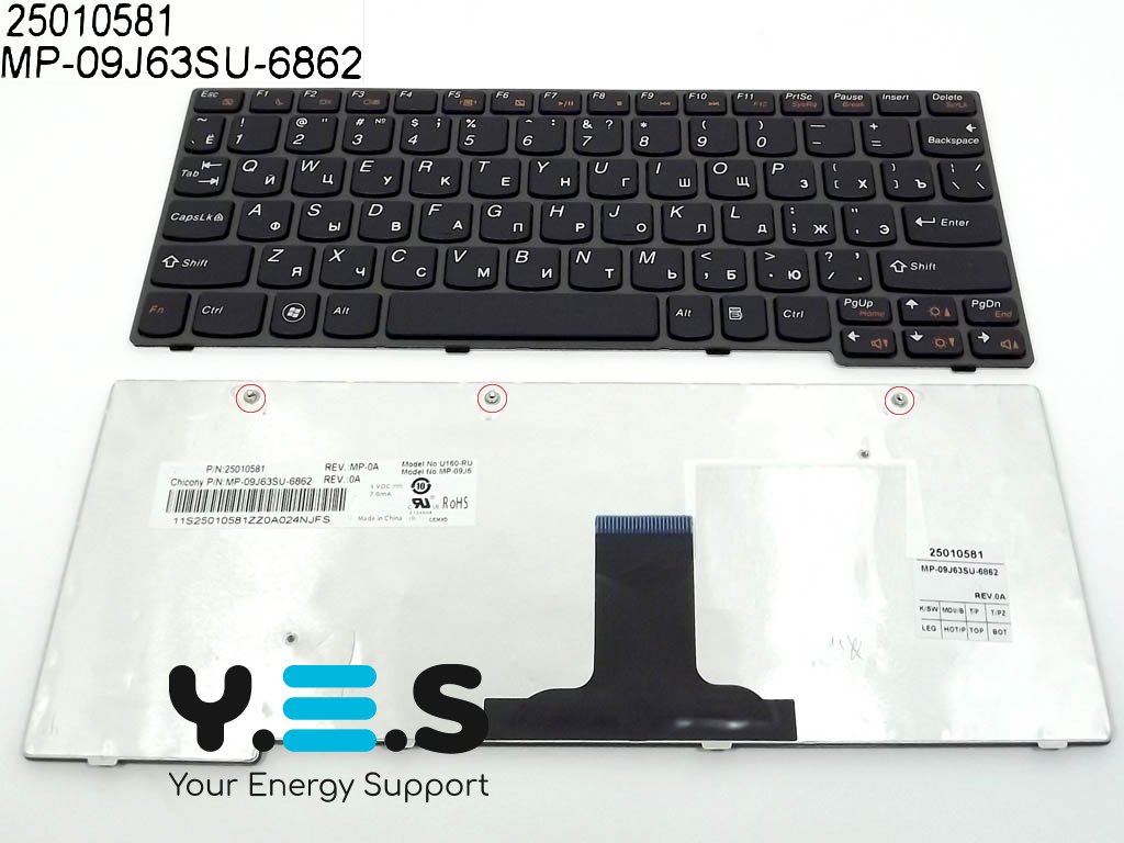 Клавіатура для ноутбука Lenovo IdeaPad U160, U165, S205 (RU Black, сіра рамка)