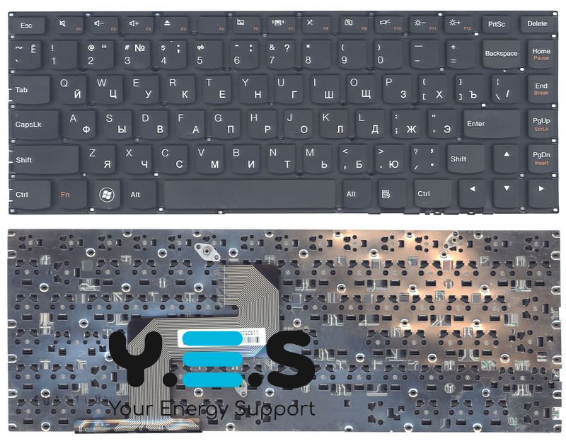 Клавіатура для ноутбука Lenovo IdeaPad U400 — чорна, без рамки, розкладка RU