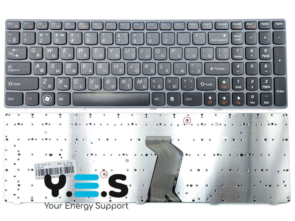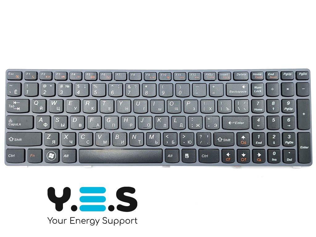 Клавіатура для LENOVO IdeaPad Y570, Y770 (RU, Black, сіра рамка) — якісна та надійна заміна для щоденного використання. Підійде для відновлення повноцінної роботи ноутбука у разі зносу або пошкодження штатної клавіатури.