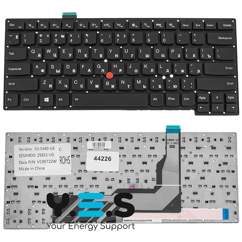 Клавіатура для ноутбука Lenovo ThinkPad S431, S440 — чорна, RU-розкладка, без рамки