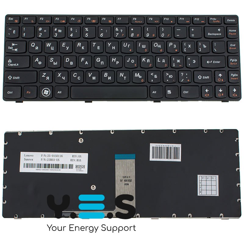 Клавіатура для ноутбука Lenovo Y480, Y485 — чорна, розкладка RU