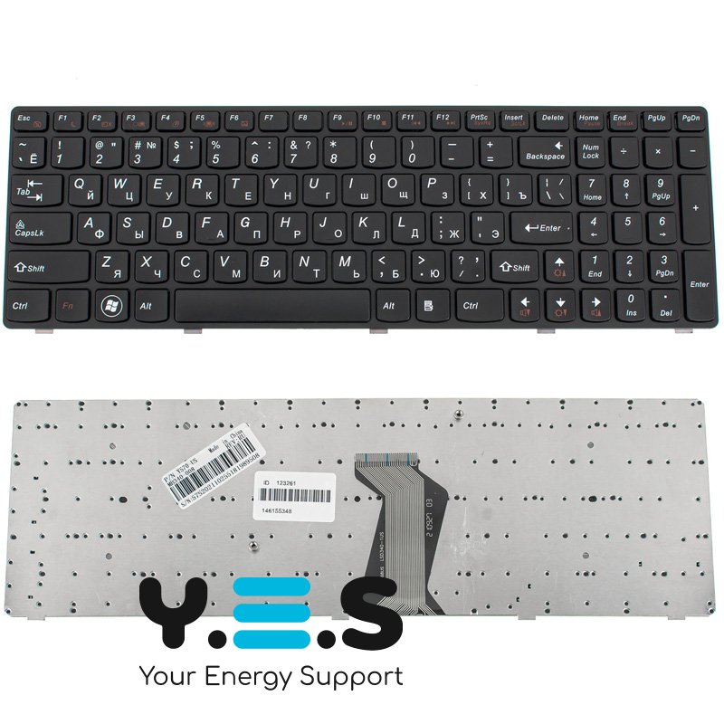 Клавіатура для ноутбука Lenovo Y570 — RU-розкладка, чорна, з чорною рамкою