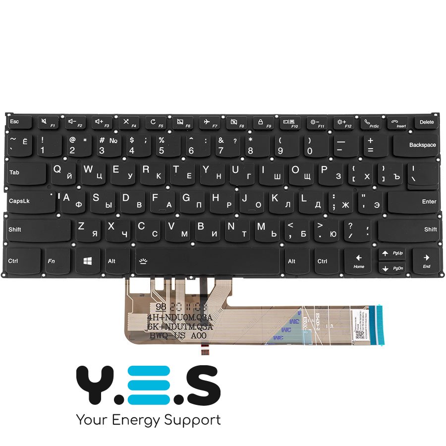 Клавіатура для ноутбука Lenovo Yoga 530-14ARR, 530-14IK — чорна, RU-розкладка, без рамки, з підсвіткою клавіш