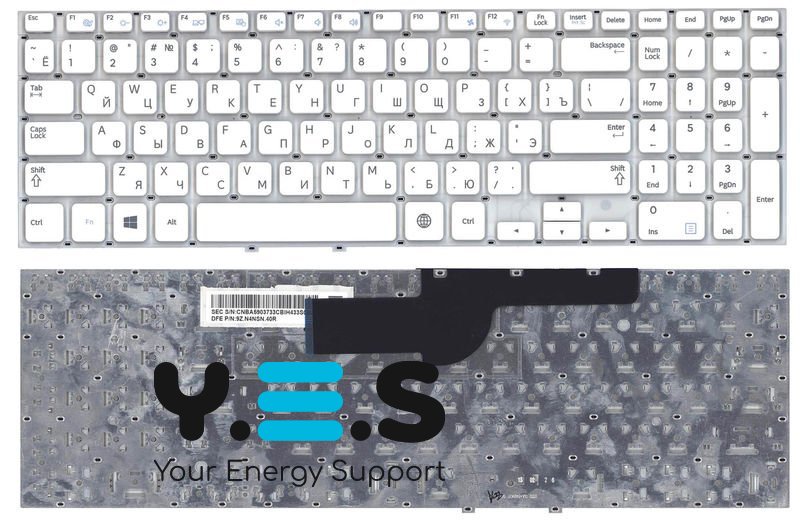 Біла клавіатура для моделей Samsung NP355V5C, NP350V5C, 355V5C, 350V5C. Має російську QWERTY‑розкладку (RU, JCUKEN). Зазвичай постачається під OEM‑кодами BA59‑03770D, CNBA5903770CBIH, CNBA5903770DBIH, PK130RU1B02. Ідеальна заміна оригінальної клавіатури в цих моделях.