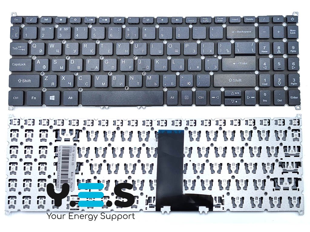 Клавіатура для ноутбуків ACER Aspire A515-43 / A515-53 / A515-54 / A515-55 / A515-56 / A515-44 / A515-45 / A315-21 / A315-31 / A315-33 та SF315-51 — RU, чорна, без рамки