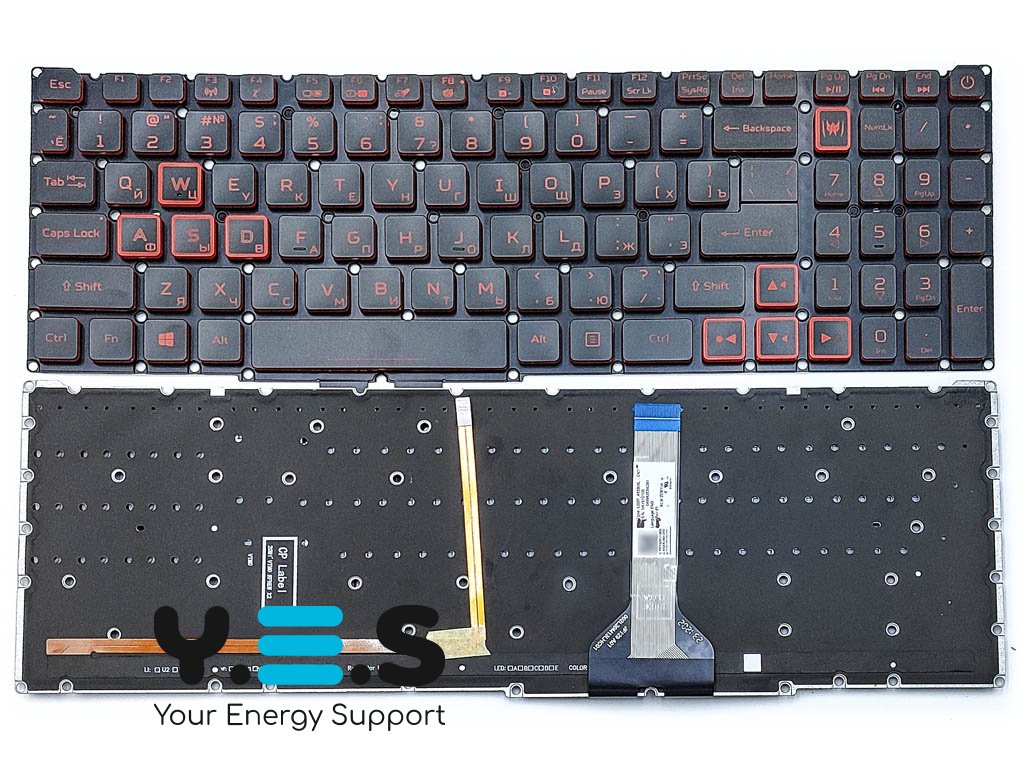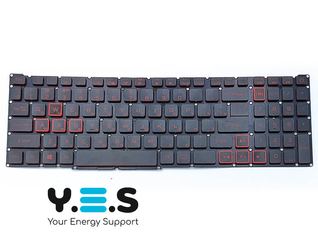 Клавіатура для ноутбуків ACER Nitro 5 AN515-45 / AN515-55 / AN515-56 / AN515-57 / AN517-41 / AN517-53, N20C1 — чорна RU, без рамки, з червоною підсвіткою