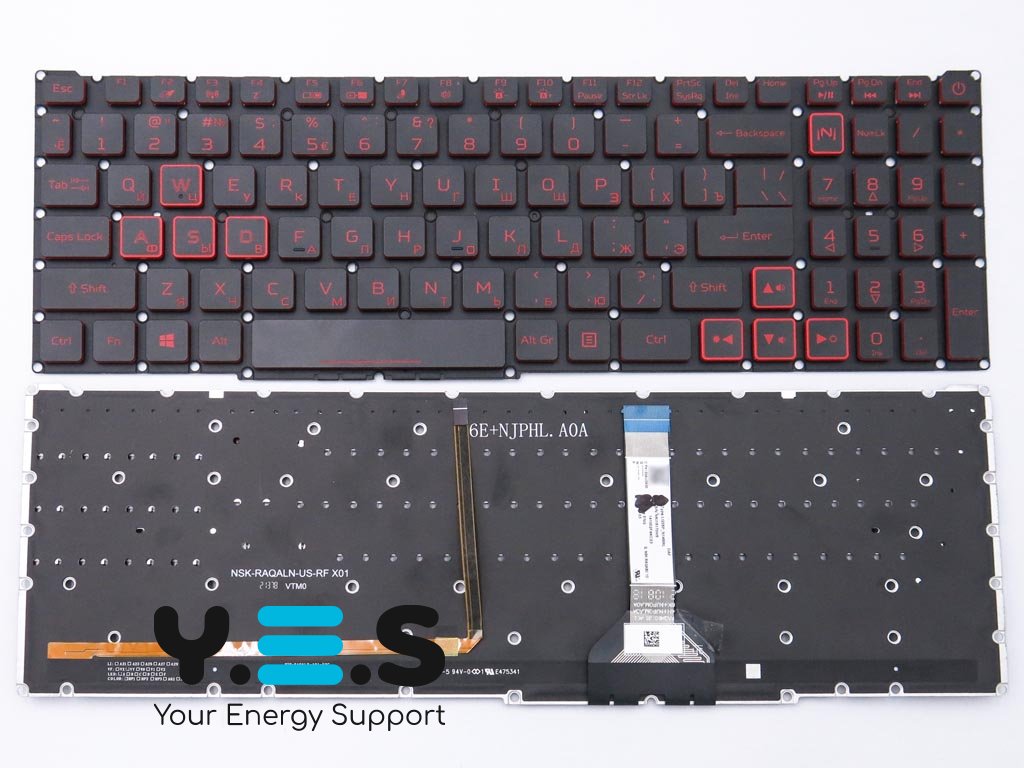 Клавіатура для ноутбуків ACER Nitro 5 (AN515-46, AN515-56, AN515-57, AN515-58, AN517-41, AN517-54, AN517-55, AN517-56, AN715-51) — чорна, RU-розкладка, без рамки, з червоною підсвіткою