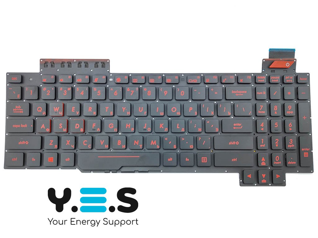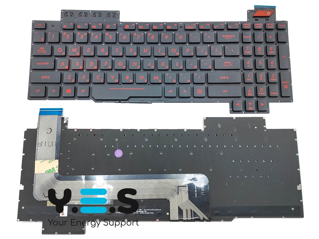 Клавіатура для ноутбуків ASUS FX503, FX503V, FX503VM, FX503VD, FX63, FX63V, FX63VD, FX63VM, GL503 V.2 — без верхніх додаткових кнопок, RU Black, без рамки, з підсвіткою