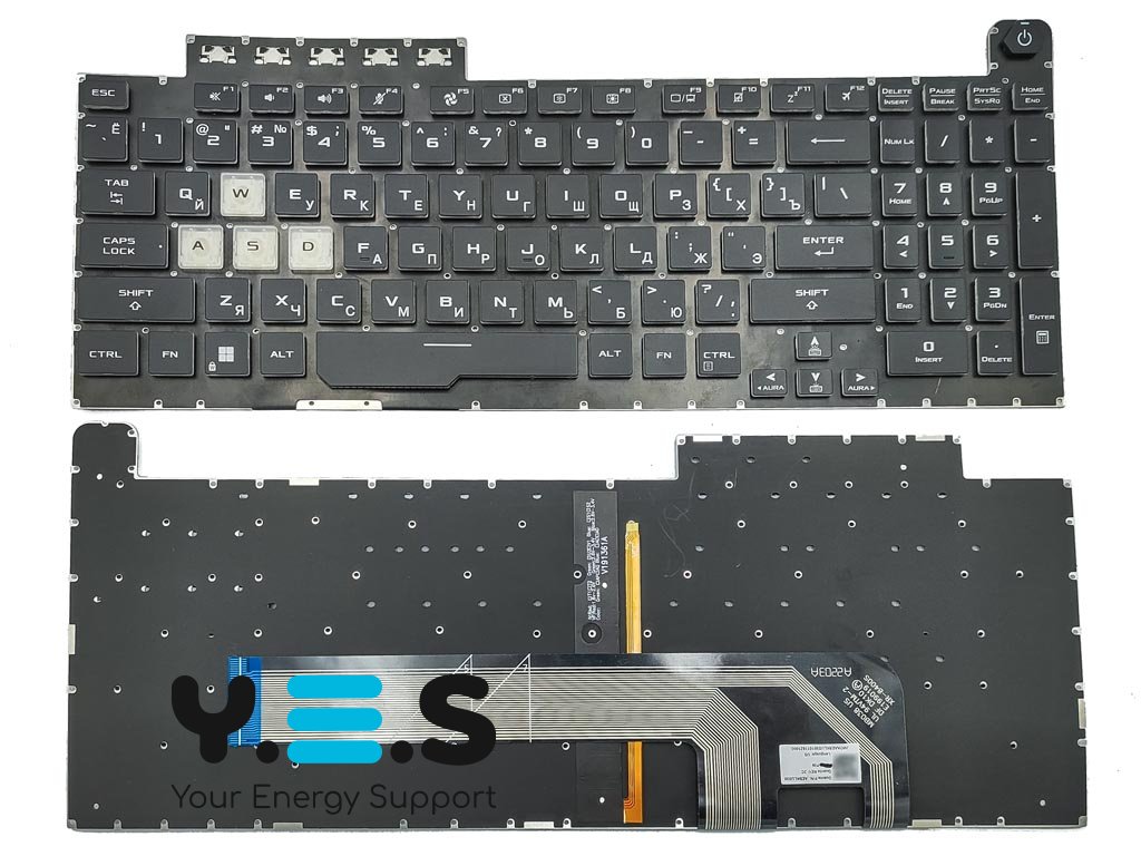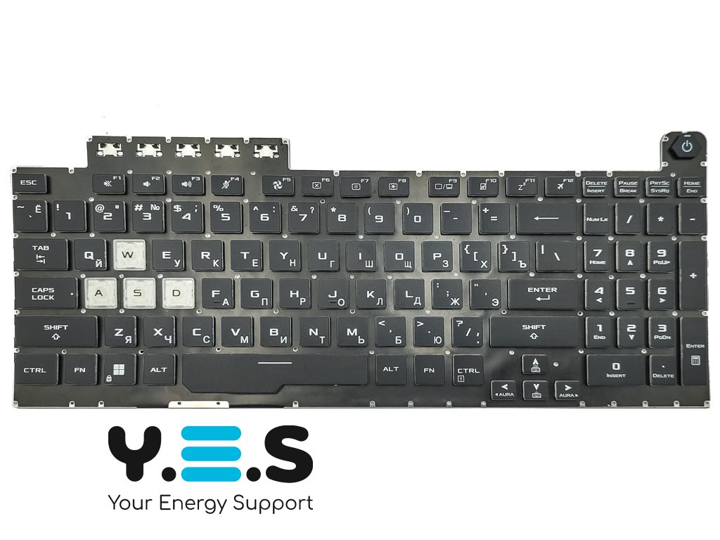 Клавіатура для ноутбуків ASUS TUF Gaming FX506, FX506U, FX506II, FX506IH, FX506LI, FA506, FA506Q, FA506QM, FA506QR, FX506II, FA706, FX706 — чорна (RU), без рамки, з RGB-підсвіткою, Original
