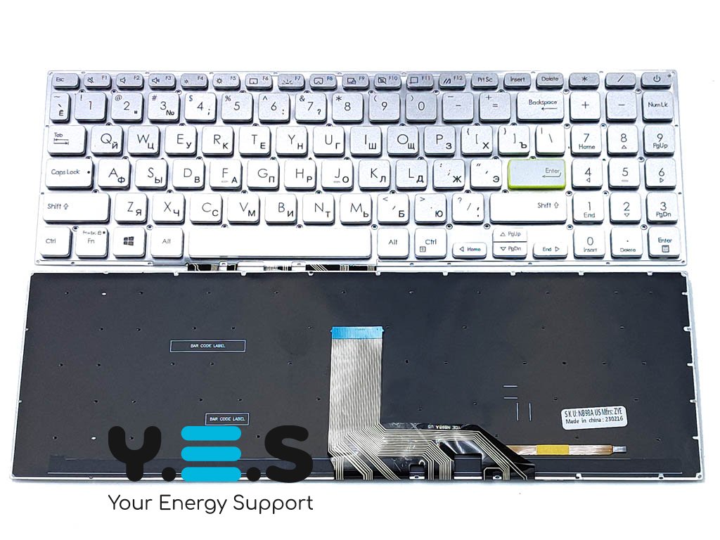 Клавіатура для ноутбуків ASUS X513/X513E/X513EA/X513EP/X513EQ/X513IA/X513UA, S533EA/S533FA, M513/M513I/M513U/M513UA, K513/K513E, M5600, S5600 — RU Silver, з підсвіткою