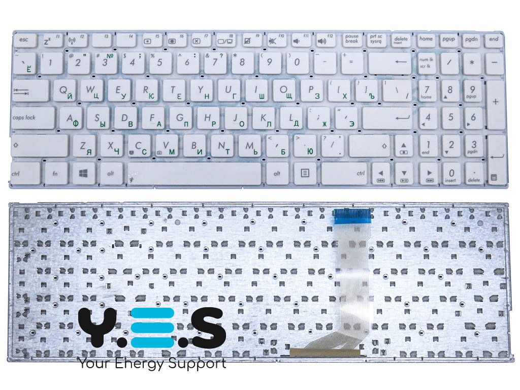 Клавіатура для ноутбуків ASUS X556, X556U, X556UA, X556UB, X556UF, X556UJ, X556UR, X556UV, A556, A556UA, A556UV, K556UV, FL5900U, X756U — біла, RU-розкладка, без рамки