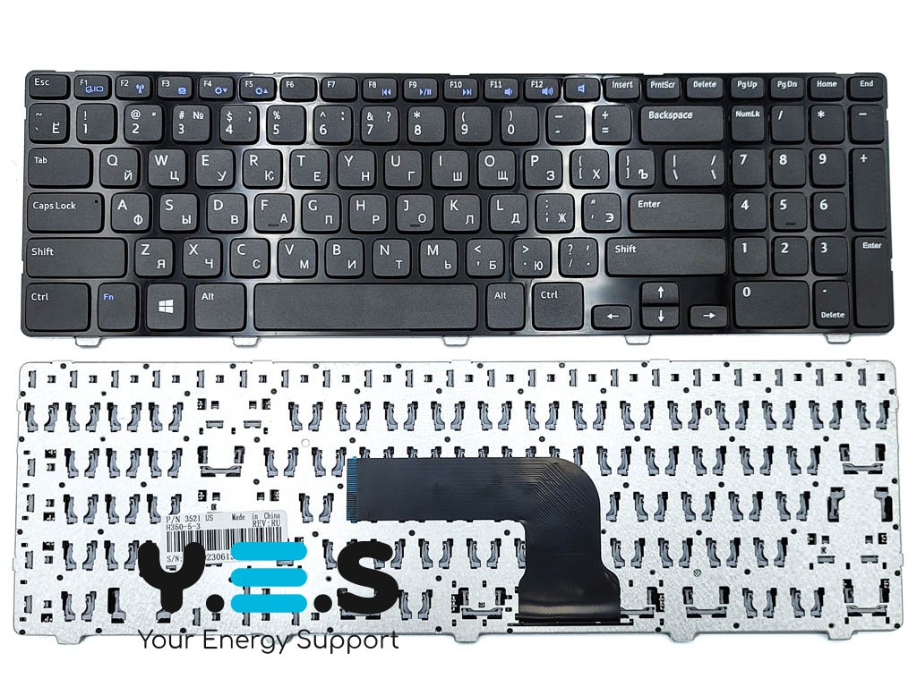 Клавіатура для ноутбуків DELL Inspiron 15 3521/5421/5521/5535/5537/1316/3537/5528/3540 та Vostro 2521/3531, M531R — RU, чорна, з глянцевою рамкою (з рамкою) Original
