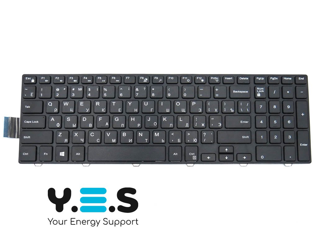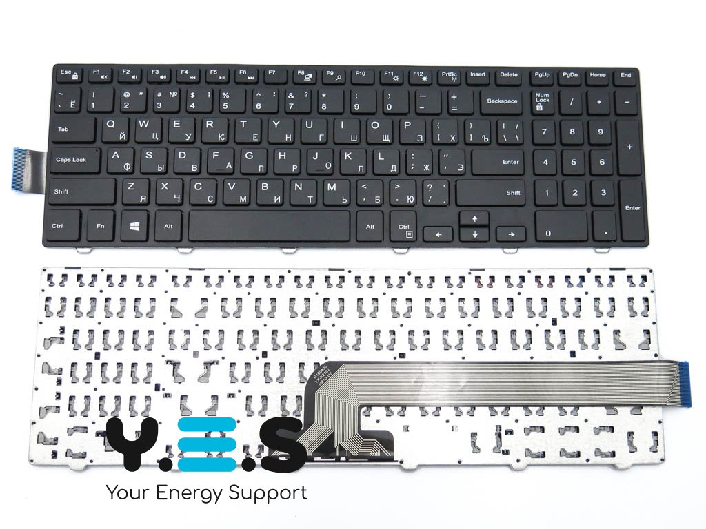 Клавіатура для ноутбуків Dell Inspiron 3541/3542/3546/3551/3552/3558/3543/3550/3560/5542/5548/5543/5545/5552/5759/7557/5551/5555/5558 — чорна, розкладка RU, з рамкою