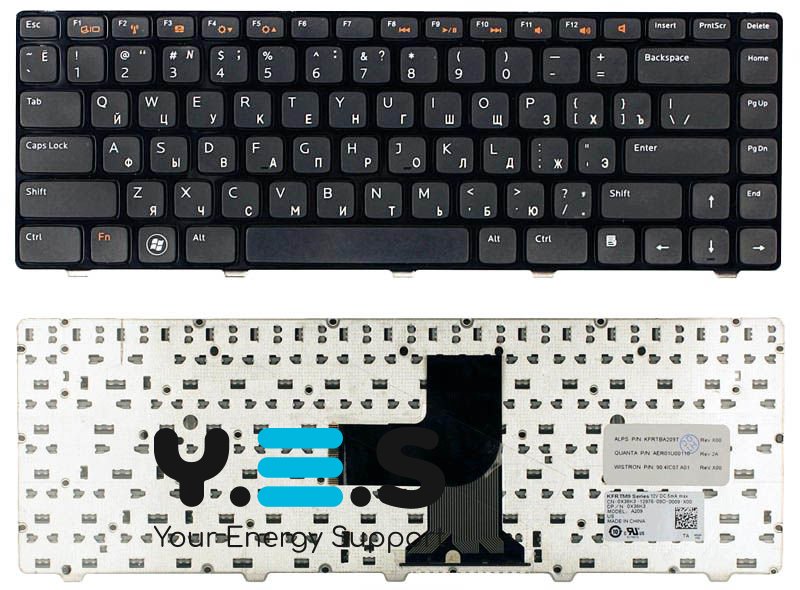 Клавіатура для ноутбуків Dell Vostro 1440/1450/1540/1550/3450/3550/V131, Inspiron 14R/7520/N4050/N4110/M5040/M5050/N5040/N5050 та XPS 15 (L501x, L502x) — чорна, з чорною рамкою, розкладка RU, Original