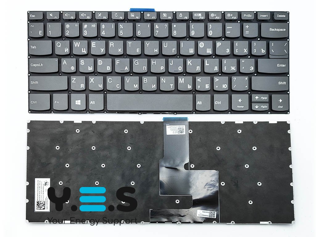 Клавіатура для ноутбуків Lenovo (RU, сіра) — сумісна з Ideapad 330S-14ARR, 330S-14AST, 330S-14IKB, 330S-14ISK, V330-14IKB, Yoga 520-14IKB, 720-15ISK, 720-15IKB