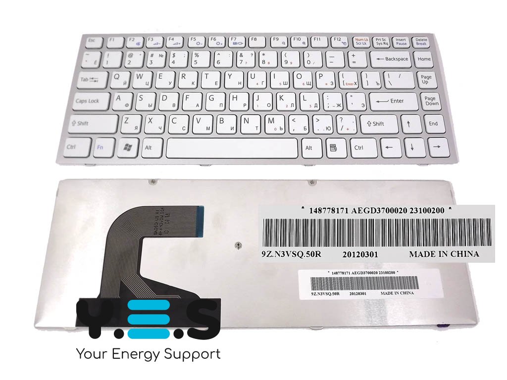 Клавіатура для ноутбуків SONY VPC-S Series (біла з сріблястою рамкою, російська розкладка)