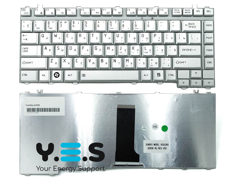Клавіатура для ноутбуків Toshiba Satellite A200, A300, A305, A305D, L300D, L305, M300 — RU, срібляста, Original