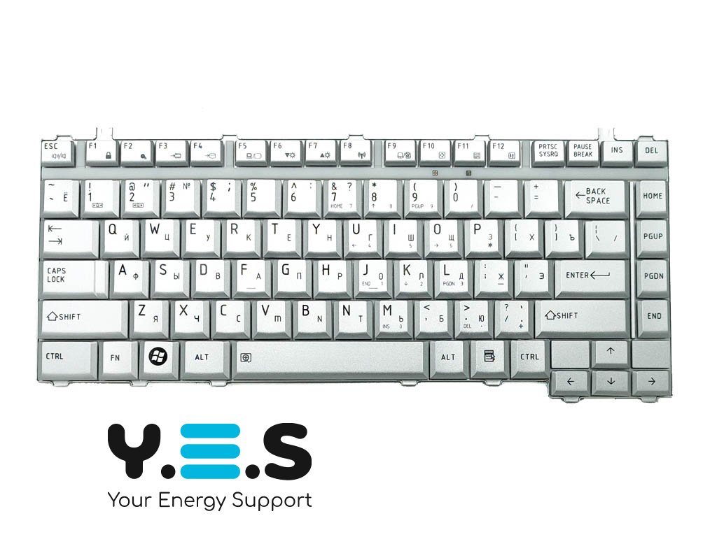 Оригінальна клавіатура для ноутбуків Toshiba Satellite серій A/L/M у кольорі Silver з російською (RU) розкладкою. Якісний та надійний варіант для щоденного використання: стабільний відгук клавіш і коректна сумісність за формою та підключенням (за партномером).