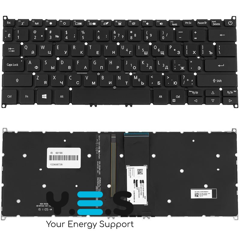 Клавіатура до ноутбуку ACER (AS: SF314-54) російська розкладка, чорний колір, без фрейму, підсвітка клавіш (Оригінал)