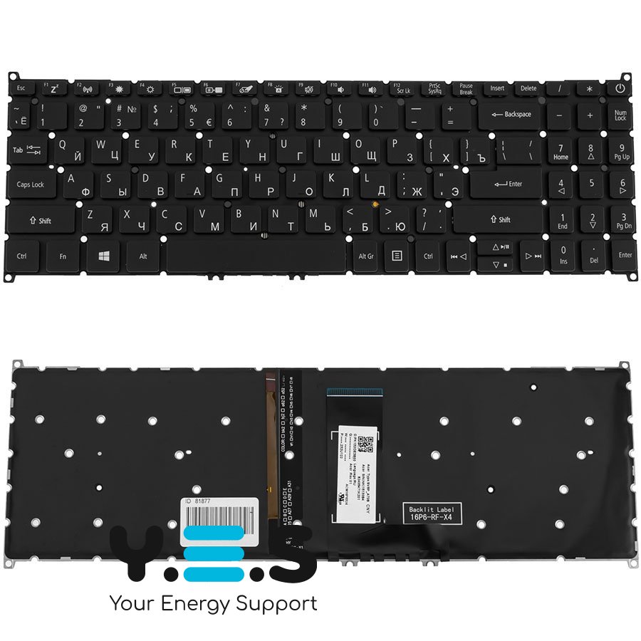 (Купити Клавіатура до ноутбуку ACER (SW: SF315-51) російська розкладка, чорний колір, без фрейму, підсвітка клавіш (Оригінал))
