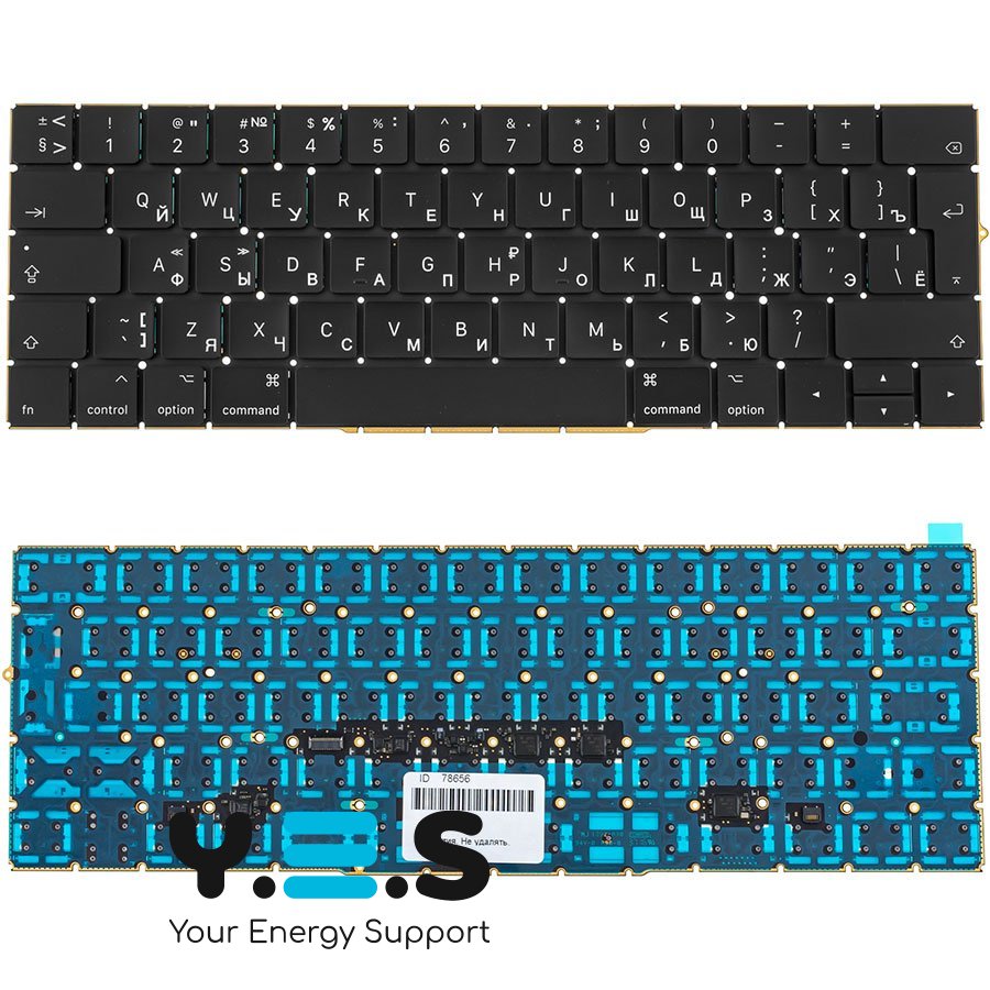 Клавіатура до ноутбуку APPLE (MacBook Pro Retina: A1706, A1707 (2016-2017)) російська розкладка, чорний колір, BIG Enter, підсвітка клавіш (Оригінал)