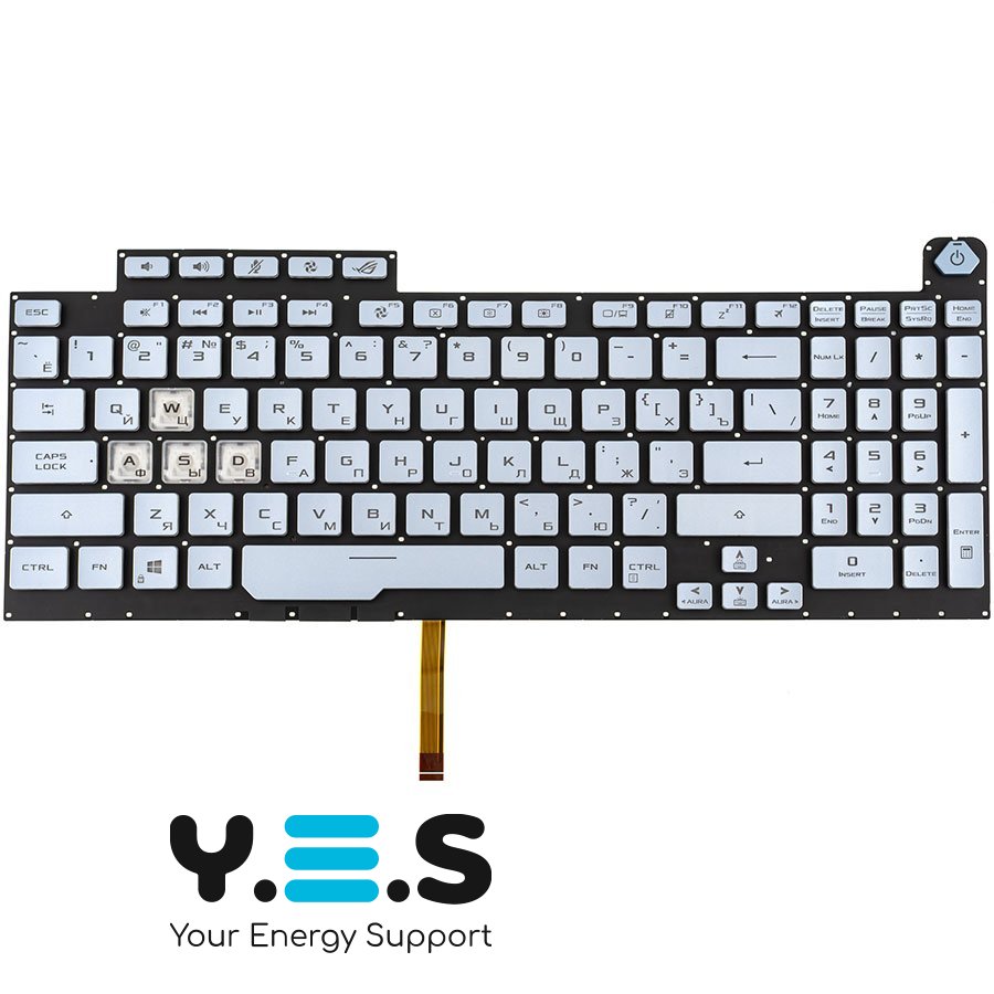 Клавіатура до ноутбуку ASUS (G731GD, G731GT, G731GU) російська розкладка, сріблястий колір, без фрейму, підсвітка клавіш (RGB 4, 16 pin) (Оригінал)