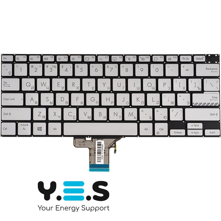 Клавіатура до ноутбуку ASUS (X3400, X7400 серій), російська розкладка, сріблястий колір, без фрейму, підсвітка клавіш