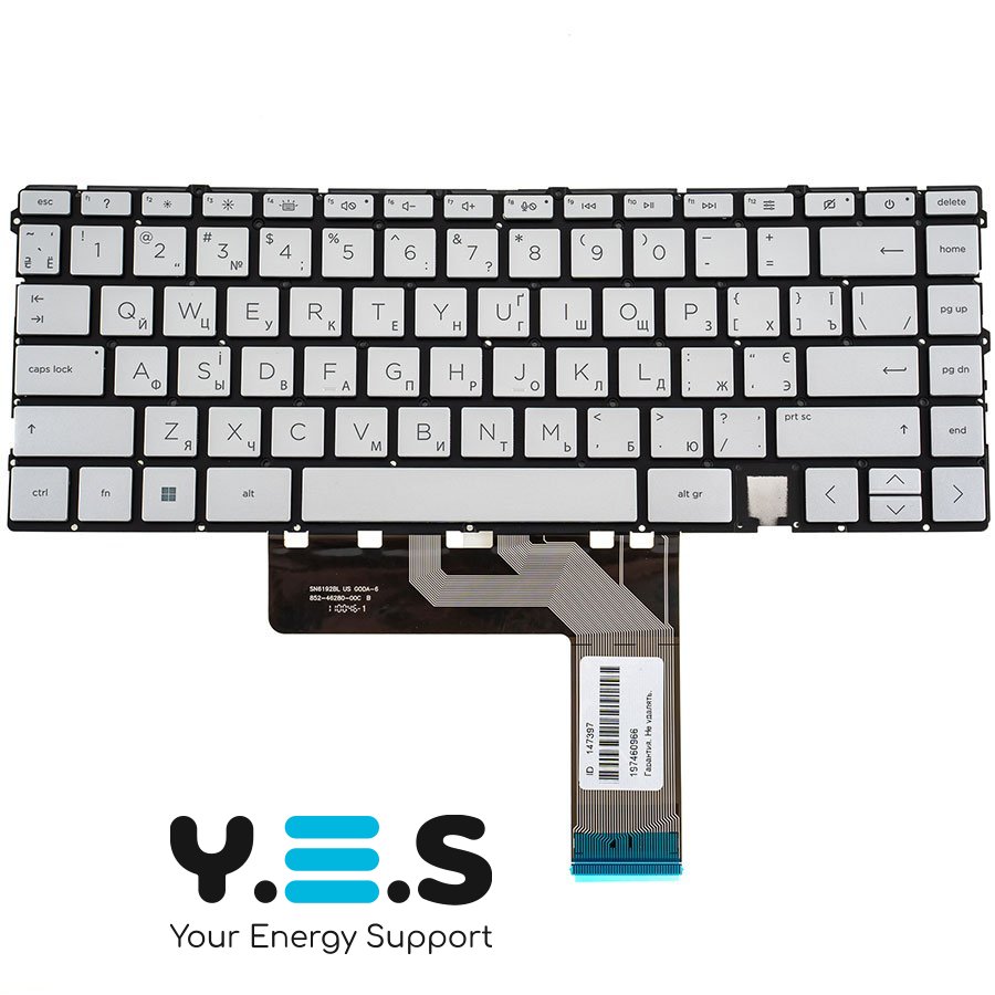 Клавіатура до ноутбуку HP (15-EP) українська розкладка, сріблястий колір, без фрейму, підсвітка клавіш (Оригінал)