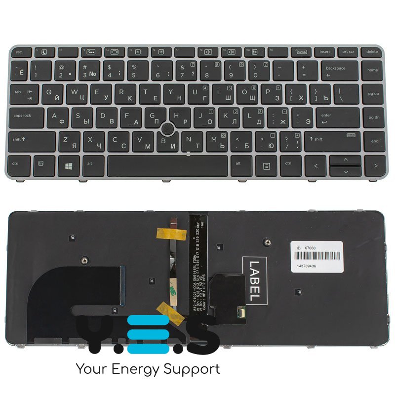 Клавіатура до ноутбуку HP (EliteBook: 840 G3) — російська розкладка, сріблястий колір frame, підсвітка клавіш, с джойстиком.