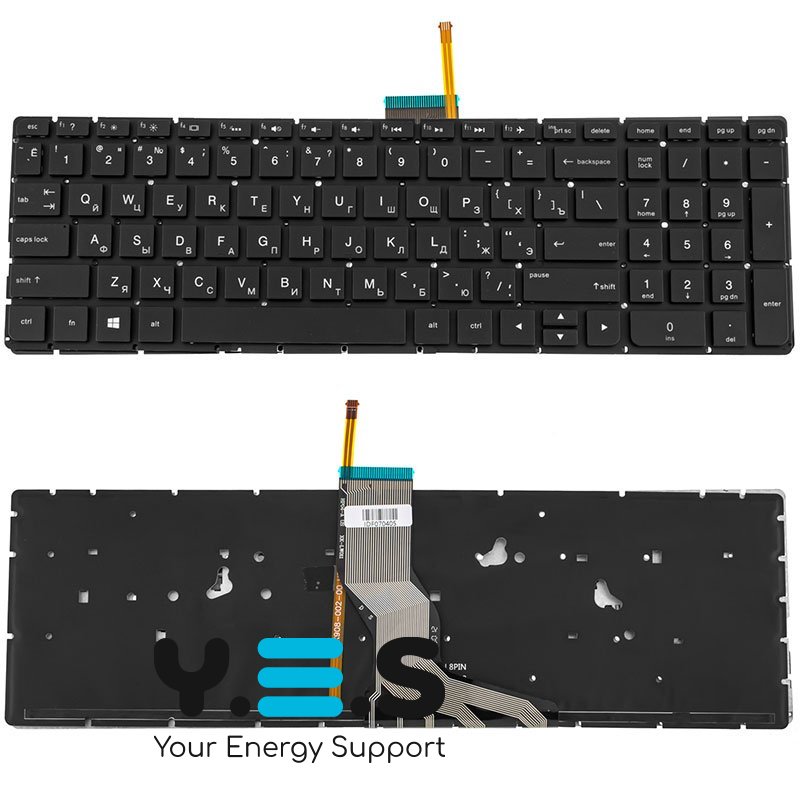 Клавіатура до ноутбуку HP (Pavilion: 15-AK) російська розкладка, чорний колір, без фрейму, підсвітка клавіш — сумісний замінник оригінальної клавіатури, призначений для заміни пошкодженого або зношеного модуля.