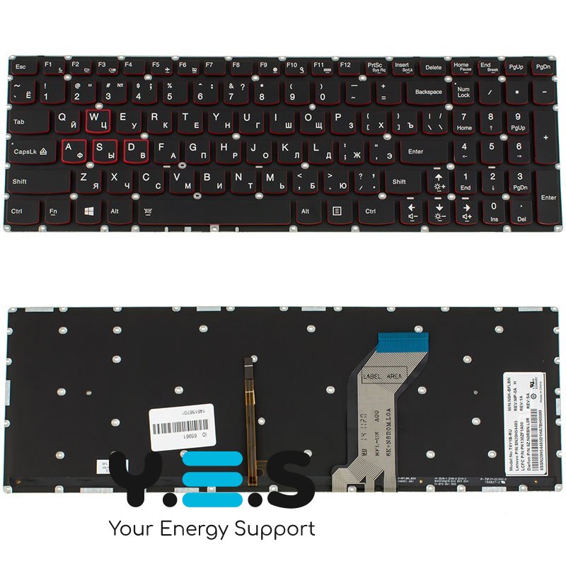 Клавіатура до ноутбуку LENOVO (IdeaPad: Y700-15), російська розкладка, чорний колір, без фрейму, підсвітка клавіш (Оригінал)