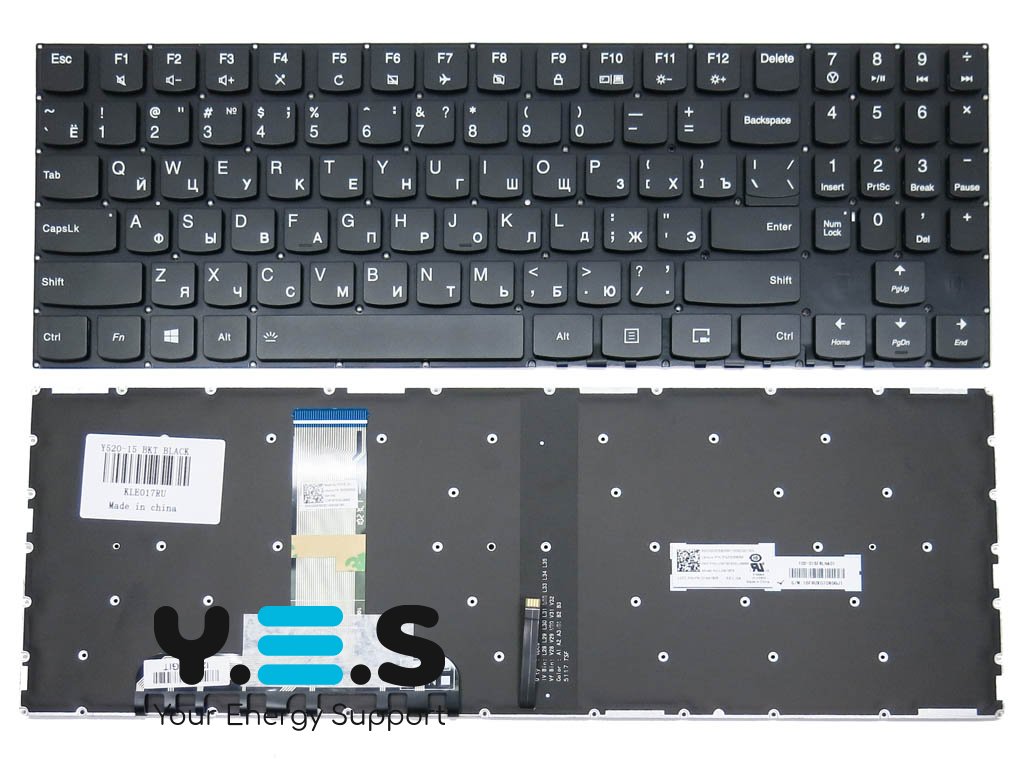Клавіатура з підсвічуванням для LENOVO Legion Y520 / Y520-15IKB / Y520-15IKBA / Y520-15IKBN / Y720 / Y720-15IKB / Y530-15ICH / Y730 / Y540-15IRH / Y540-17IRH / Y545-PG0 — чорна (RU), без рамки, Original