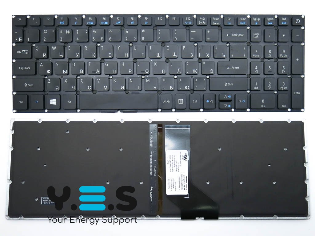 Клавіатура з підсвіткою для ноутбуків ACER Aspire E5-522, E5-573, E5-573T, E5-573G, E5-532G, E5-722, E5-772, V3-574G, A315, A515 — чорна, без рамки