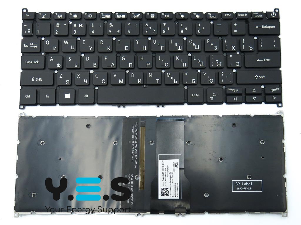 Клавіатура з підсвіткою для ноутбуків ACER Swift SF114-34, SF314-41, SF314-52, SF314-53, SF314-54, SF314-55, SF314-56, SF514-51, версія 1 — RU Black