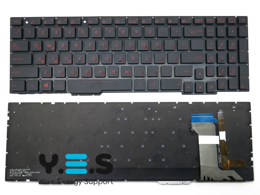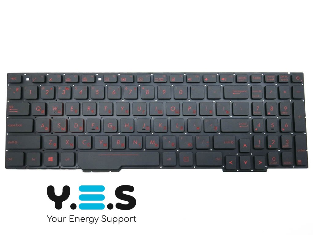 Клавіатура для ASUS GL553, GL553V, GL553VW, ZX73, FX553VD, ZX553VD, ZX53V, FX53VD, FX753VD, FZ53V (RU, Black, без рамки, з підсвіткою), оригінал