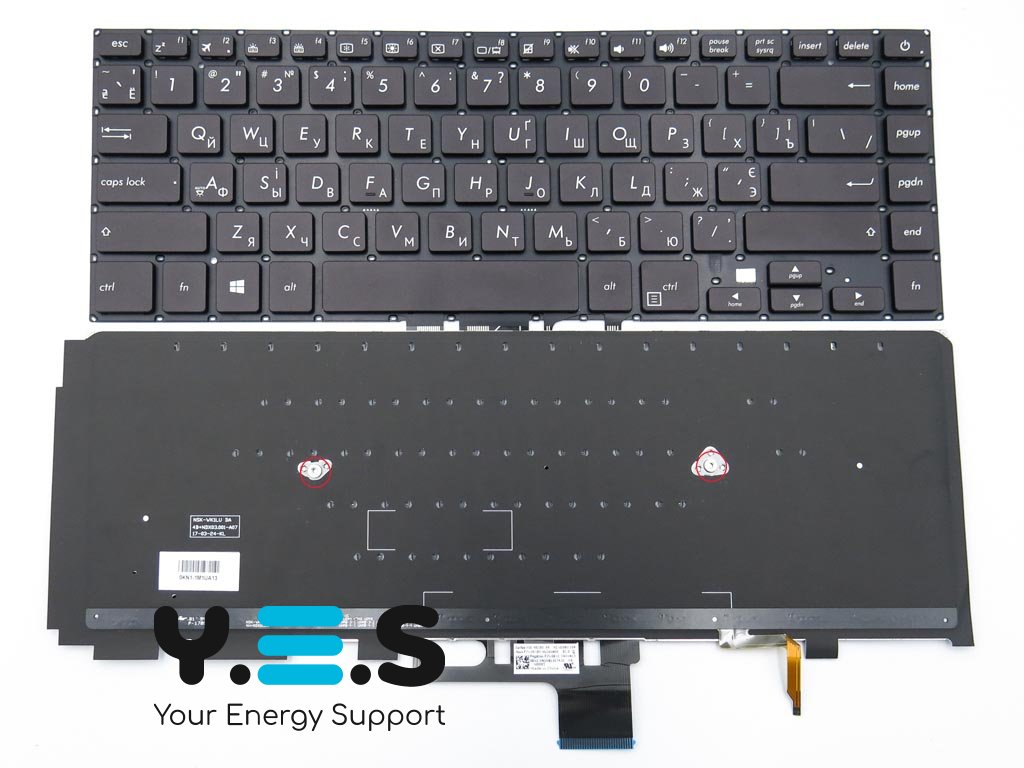 Клавіатура з підсвіткою для ноутбуків ASUS UX530, UX530UX, UX530UQ, UX550, UX550VE, UX550VD, UX580, UX580G, U5100U, UX560, U5800 — чорна (RU), без рамки, Original