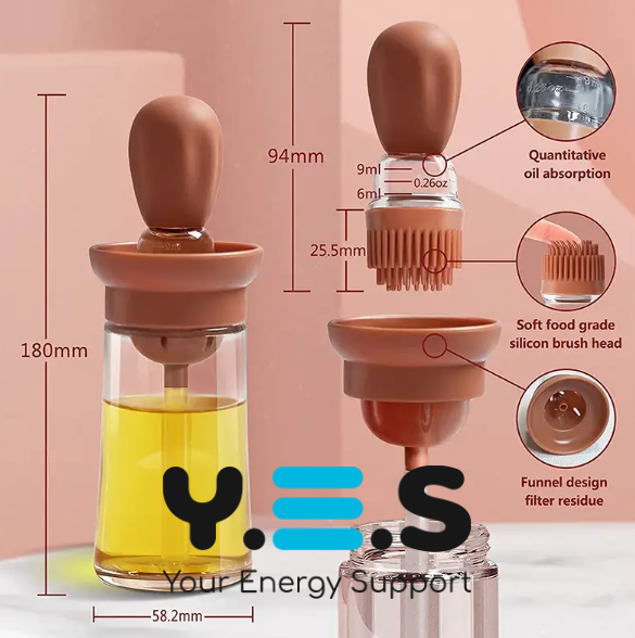 Кухонний диспенсер–дозатор олії з пензликом — зручний аксесуар для щоденного використання на кухні. Скляна пляшка підходить для олії, оцту та соусів, а пензлик допомагає акуратно наносити рідину під час смаження, запікання або змащування страв. Практичний, надійний та якісно виконаний варіант для домашньої кухні.