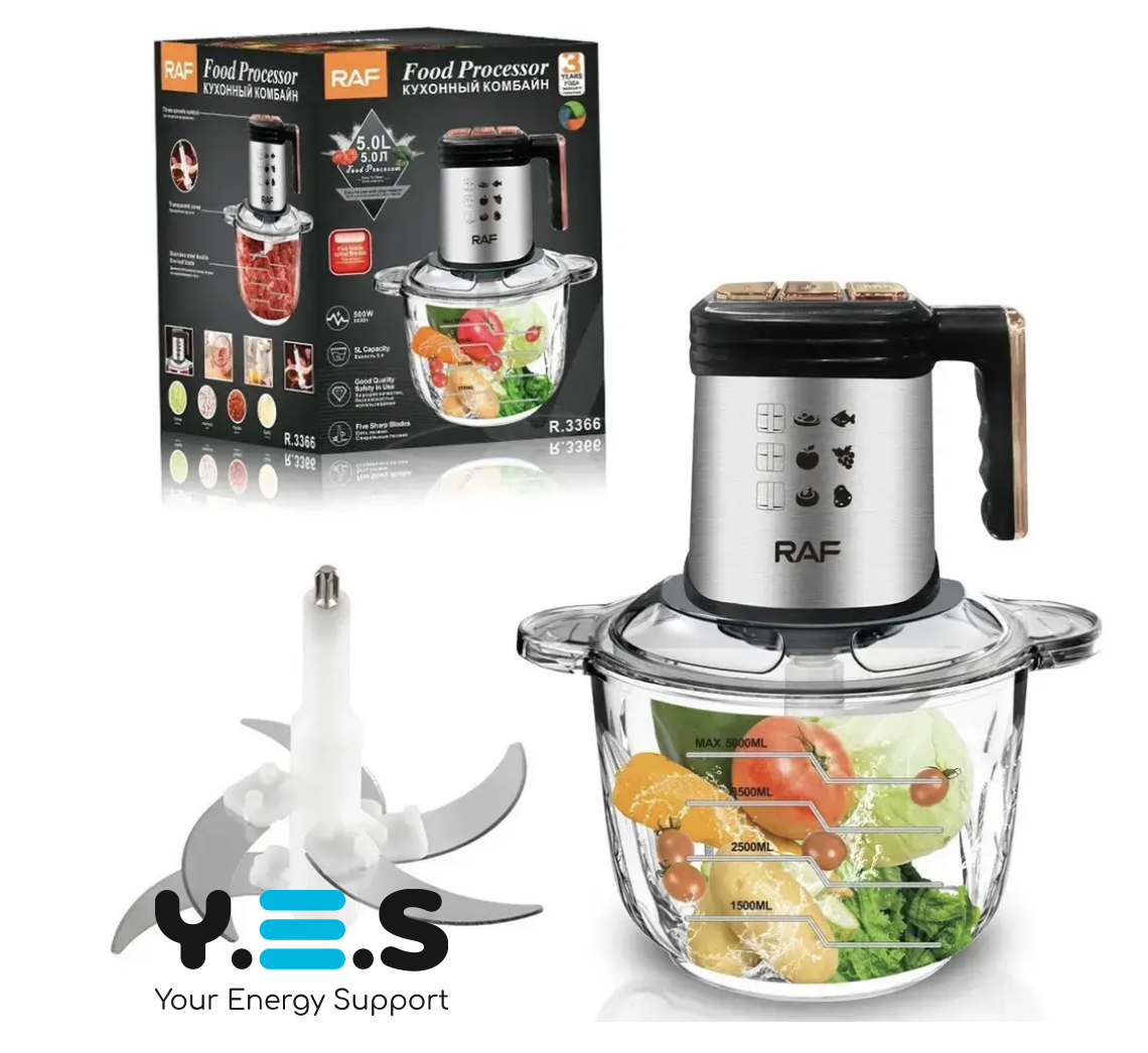 Кухонний комбайн-подрібнювач RAF R.3366, нержавіюча сталь, 5 л, 500 Вт
