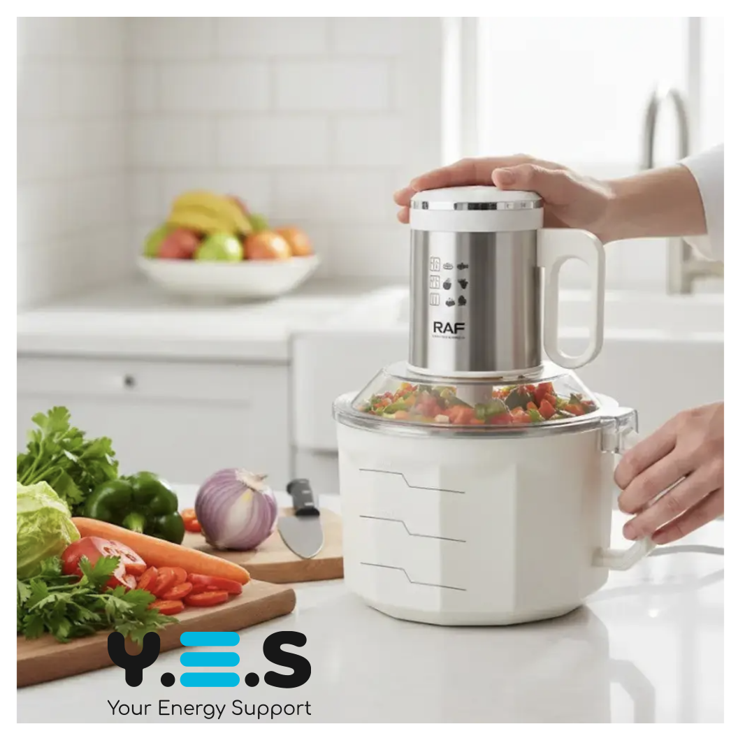 Кухонний комбайн-подрібнювач RAF R.7730 — практичний і надійний помічник для щоденного використання на кухні. Завдяки потужності 500W, місткій чаші 5 л та корпусу з нержавіючої сталі він підходить для швидкого подрібнення та приготування різних інгредієнтів у домашніх умовах.