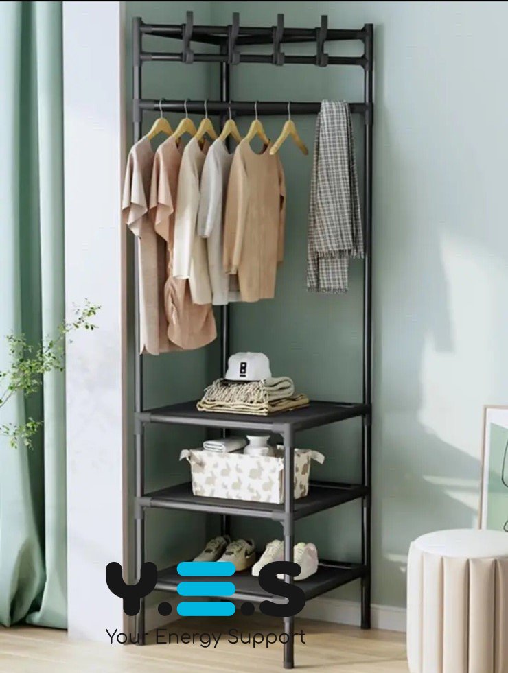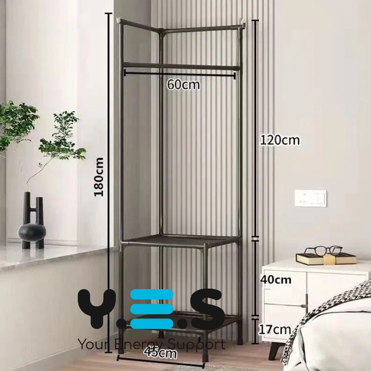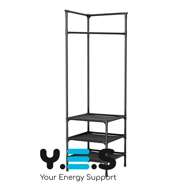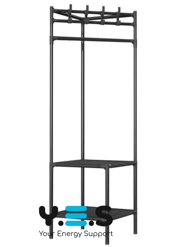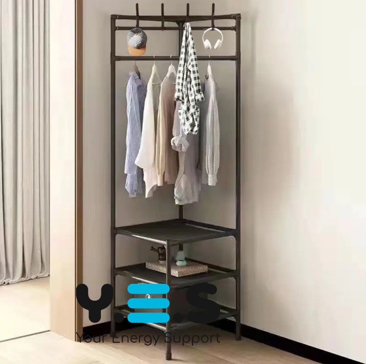 Кутова підлогова вішалка-стелаж Corner rack — практичне рішення для передпокою, яке допомагає раціонально використати кут і підтримувати порядок. Стійка має поперечину для розміщення вішалок та відкритий стелаж для зберігання повсякденних речей. Підходить для щоденного використання, зручна у побуті та розрахована на тривалу експлуатацію.